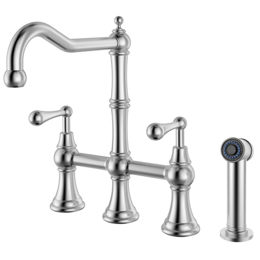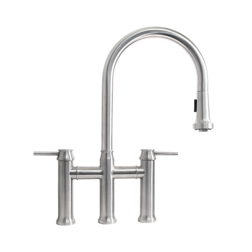 View full detailsWhitehaus WHS6900-PDK-PSS Waterhaus Bridge Faucet with a Gooseneck Swivel Spout and Lever Handles