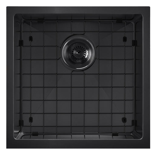 Whitehaus WHNPL1818-MBLK Noah Plus Single Bowl Linen Textured Dual-Mount Sink Set