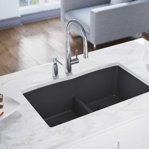 View full detailsElkay ELGHU3220RBK0 Quartz Classic 32-1/2" x 20" x 10", 60/40 2-Bowl Undermount Kitchen Sink, Black