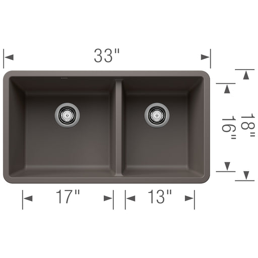 Blanco 443118 Precis SILGRANIT 33" 60/40 Double Bowl Undermount Kitchen Sink - Volcano Gray