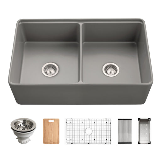 View full detailsHouzer PTW-3320SD GR Aspire 33" Gray Fireclay Farmhouse 50/50 Double Bowl Workstation Sink
