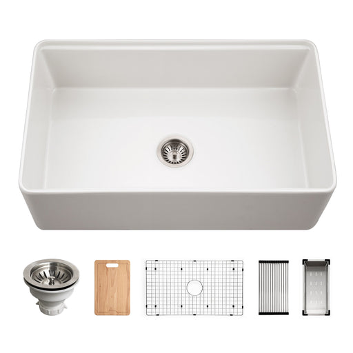 Houzer PTG-4318 WH-C Platus 33" White Fireclay Apron Front Farmhouse Single Bowl Kitchen Sink