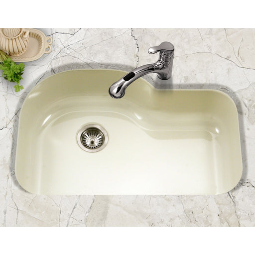 View full detailsHouzer PCG-3600 BQ Porcela 31" Biscuit Porcelain Enamel Steel Undermount Single Bowl Kitchen Sink