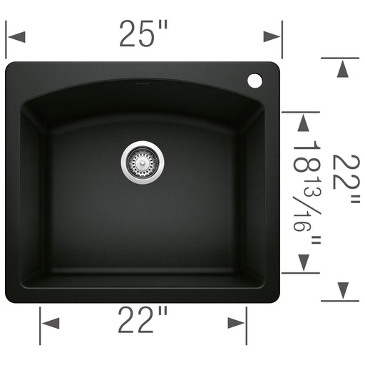 Blanco 442905 Diamond SILGRANIT 25" Single Bowl Dual Mount Kitchen Sink - Coal Black