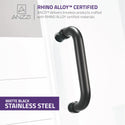 • RHINO ALLOY certified Stainless Steel high forged hinge hardware with 90 degree action