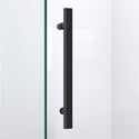 - Door Hardware Finish: Satin Black; Base Color: White; Drain Location: Corner