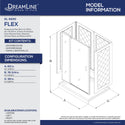 DreamLine DL-6230C-04 Flex 36"D x 60"W x 76 3/4"H Semi-Frameless Shower Door in Brushed Nickel with Center Drain Base, Backwalls