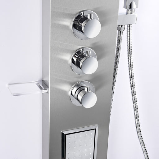 View full detailsANZZI SP-AZ023 Niagara 64" 2-Jetted Shower Panel with Heavy Rain Shower and Spray Wand in Brushed Steel