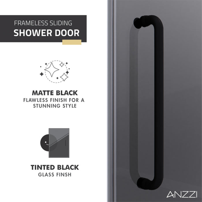 ANZZI SD-AZ8077-02MBT Leon Series 60" by 76" Frameless Sliding Shower Door in Matte Black with Tinted Glass