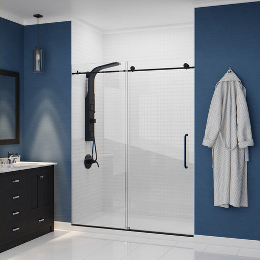 View full detailsANZZI SD-AZ8077-02MB Leon Series 60" by 76" Frameless Sliding Shower Door in Matte Black with Handle