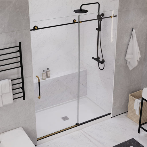 View full detailsANZZI SD-AZ13-02MBBG Madam Series 76" x 60" Frameless Sliding Shower Door in Matte Black and Gold