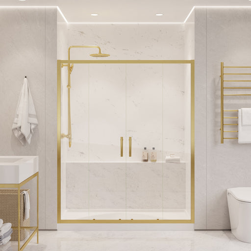 View full detailsANZZI SD-AZ8077-02BG Leon Series 60" by 76" Frameless Sliding Shower Door in Brushed Gold with Handle