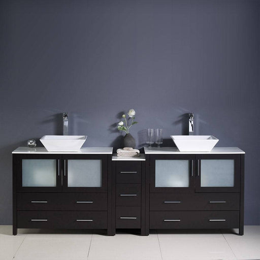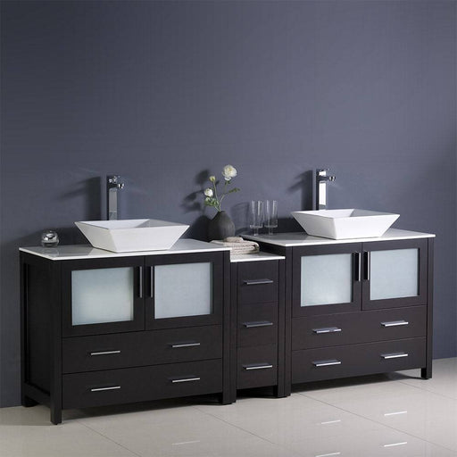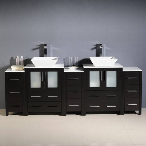 View full detailsFresca FCB62-361236ES-CWH-V Torino 84" Espresso Modern Double Sink Bathroom Cabinets with Tops & Vessel Sinks