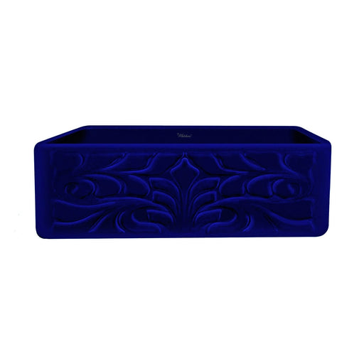 Whitehaus WHFLGO3018-BLUE Farmhaus Fireclay Reversible Sink with a Swirl Design Front Apron