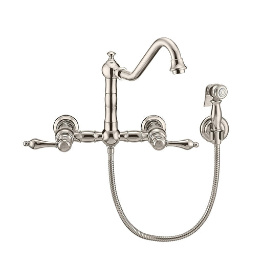 View full detailsWhitehaus WHKWLV3-9402-NT-PN Vintage III Plus Wall Mount Faucet with Lever Handles and Side Spray