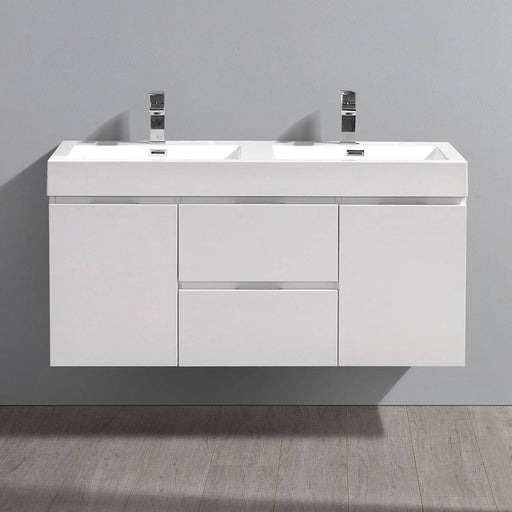 Fresca FCB8348WH-D-I Valencia 48" Glossy White Wall Hung Double Sink Modern Bathroom Vanity