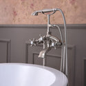 ANZZI has brought art to life in the form of an elegantly crafted full sized freestanding and claw foot tub floor mounted faucet. The ANZZI Tugela series features 3 handle control design, powerful tub filling spout and far reaching hand held sprayer. All this is suspended atop a floor mounted freestanding architecture in brushed nickel which housing solid brass interior components. ANZZI freestanding faucets are crafted for looks and built for reliability.