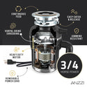 ANZZI GD-AZ234 MEDUSA 3/4 HP Continuous Feed Undersink Garbage Disposal