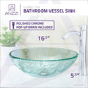 ANZZI LS-AZ065 Vieno Series Tempered Glass Bathroom Sink Specifications