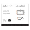 ANZZI LS-AZ112 Rhodes Series Undermount Bathroom Sink Specifications