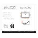 ANZZI LS-AZ113 Dahlia Series Undermount Bathroom Sink Specifications