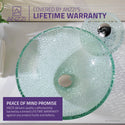 The ANZZI Paeva Series sink is a traditionally crafted round vessel sink adorned in a Crystal Clear Chipasi Finish. Each ANZZI vessel sink is formed using RHINO ALLOY certified high tempered Deco-Glass material. Additionally a matching Deco-Glass and chrome single handle waterfall faucet is bundled with vessel sink as a set. The result is a dynamically shaped and captivating vessel centerpiece for any bathroom counter.