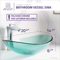 ANZZI LS-AZ8121 Tale Series Tempered Glass Bathroom Sink Specifications