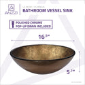 ANZZI LS-AZ8226 Gardena Series Tempered Glass Bathroom Sink Specifications