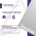 - RHINO ALLOY certified marine grade acrylic with fiberglass reinforcement
