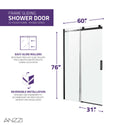 ANZZI SD-FRLS05702MB Rhodes Series 60" x 76" Frameless Sliding Shower Door with Handle in Matte Black