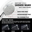 - Swiveling overhead showerhead features Heavy Rain water pressure technology