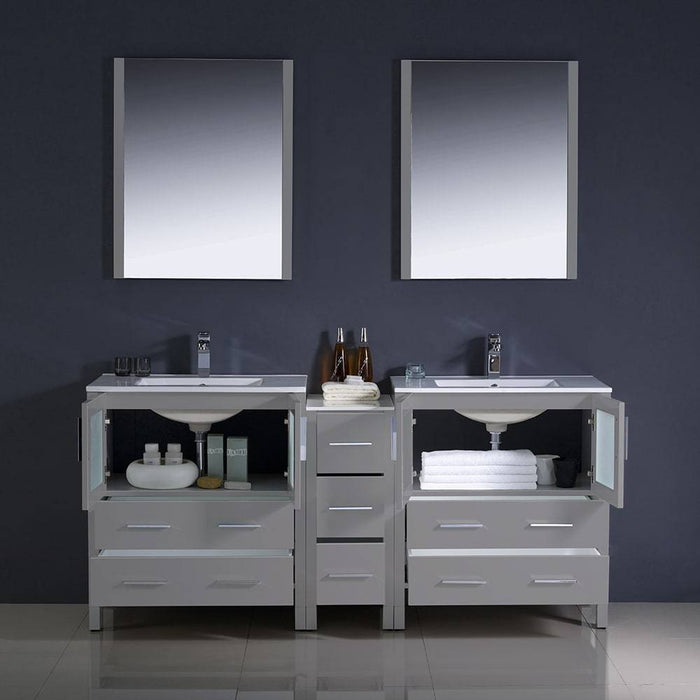 Fresca FVN62-301230GR-UNS Torino 72" Grey Modern Double Sink Bathroom Vanity with Side Cabinet & Integrated Sinks